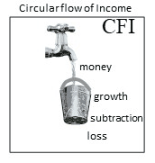 Economic theory tells the public when the bucket is emptied onto crops it is 100% full (CFI over time). However, an audit of the CFI shows that the bucket, when it is emptied, is completely empty (CFI examined at any point in time), the little drop which finances growth is businesses using cost plus pricing or mark-ups to resist being shut down by the zero growth design of the economy.