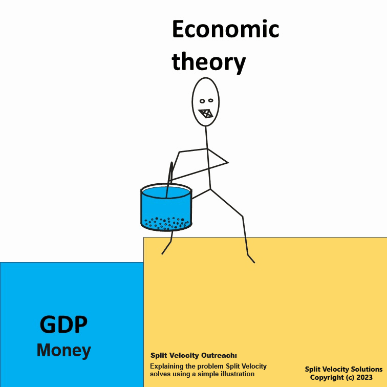 Let’s try to simplify this problem to an extent that any layperson can relate to it. A person who needs to water a garden in a dry climate may take a bucket, fill it with water and walk a short distance to where the garden is and empty the water in the bucket onto crops. The modern day CFI, which is understood over time, namely 1 year to determine GDP, assumes that the bucket is efficient, it is filled with water and this water is used to irrigate crops. However, the gardener cannot explain why out of the vast area cultivated and seeds planted the yield from the garden is rarely ever greater than 4%-5% per year (It should be noted that a growth rate of 15% though regarded as remarkable today, is considered “slow” when compared to the annual growth rates Split Velocity technology demonstrates it can achieve).