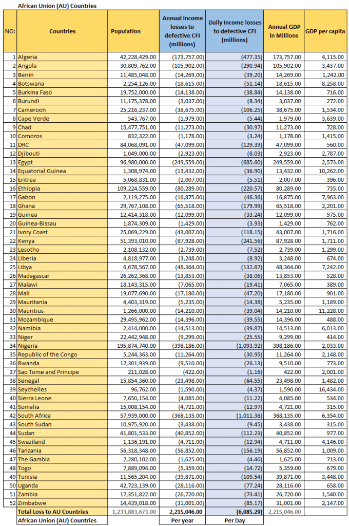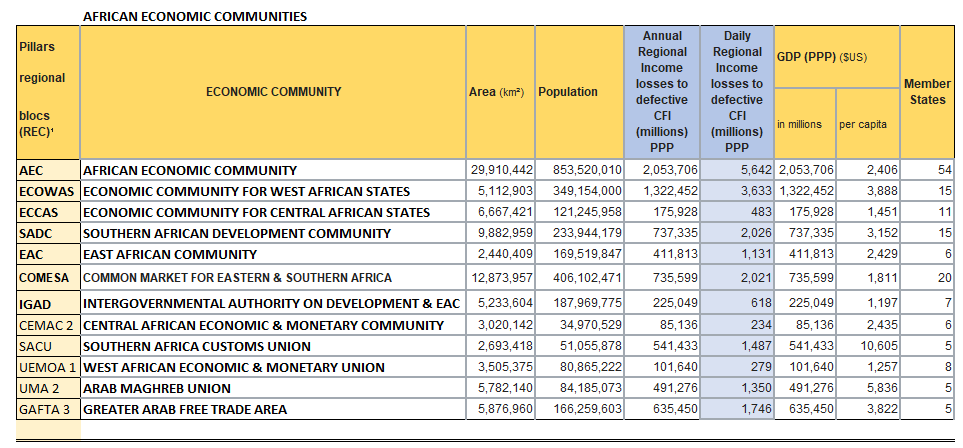 The fact that a poorly designed or defective CFI creates a daily loss of income for ECOWAS member states of US$3.633 billion (PPP) per day, SADC US$2.026 billion, African Economic Community (AEC) US$5.642 billion per day, COMESA US$2.021 billion per day is cause for concern.