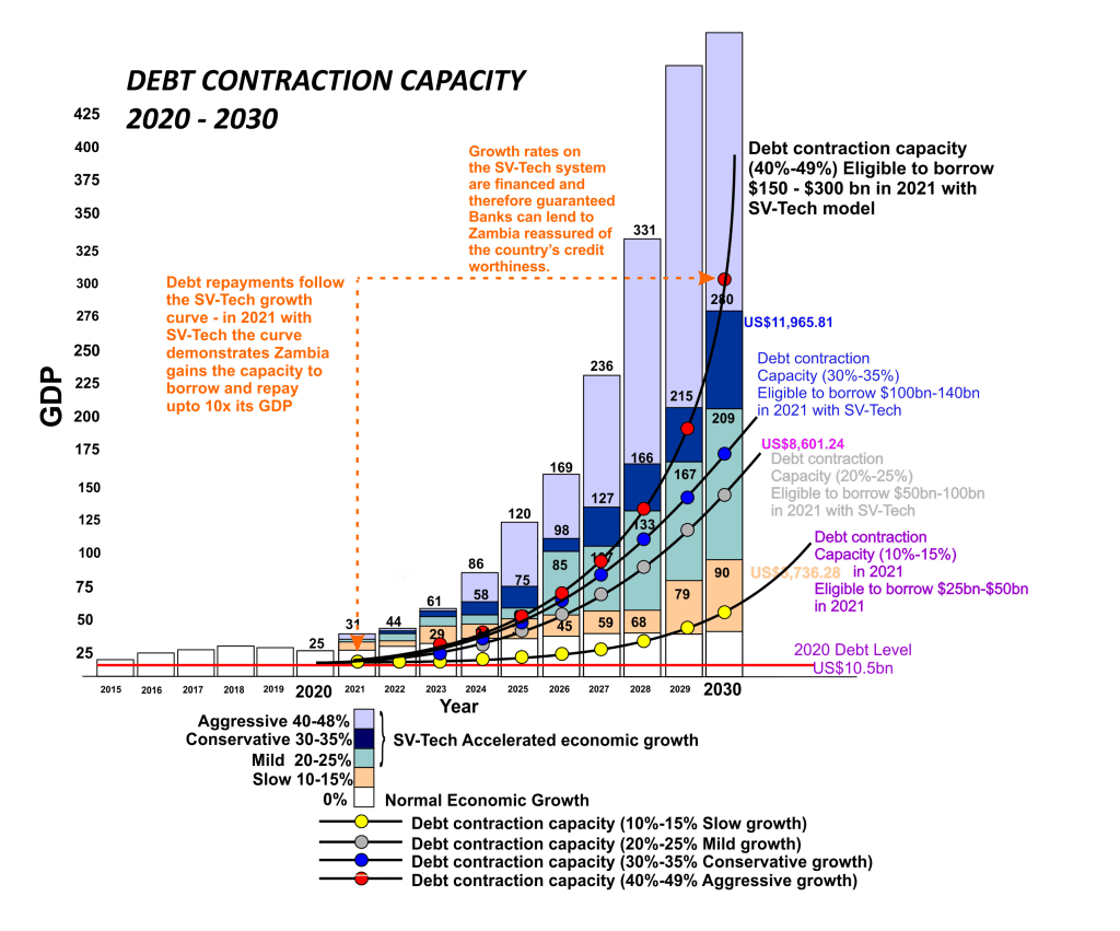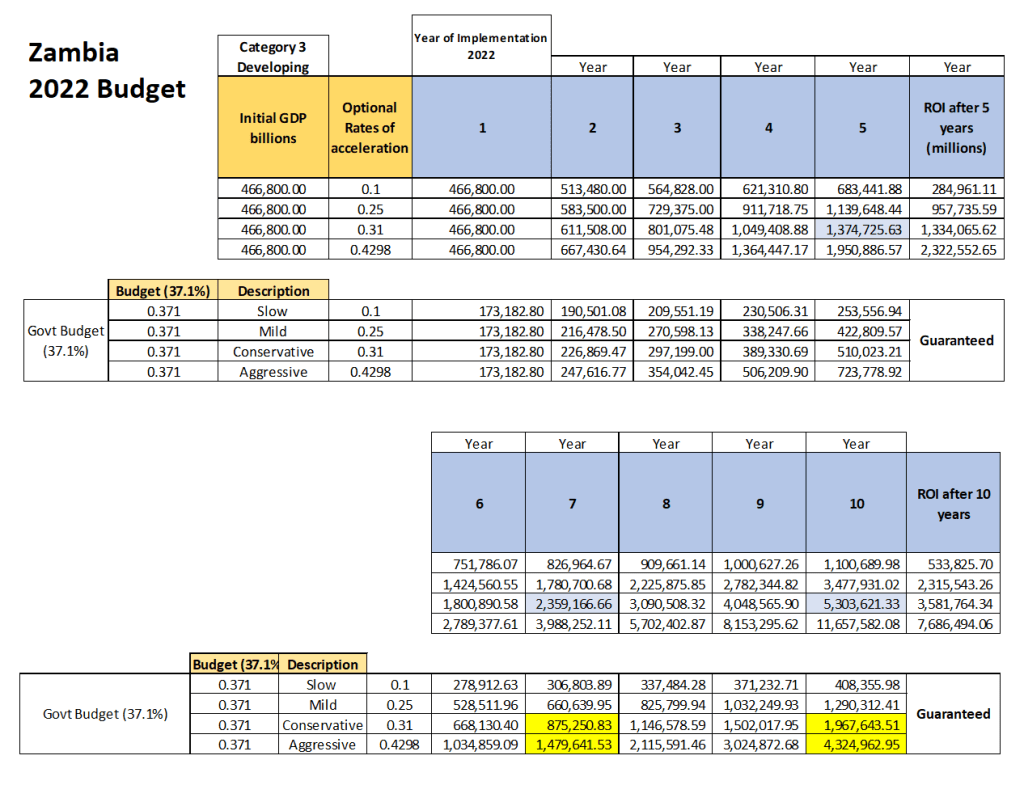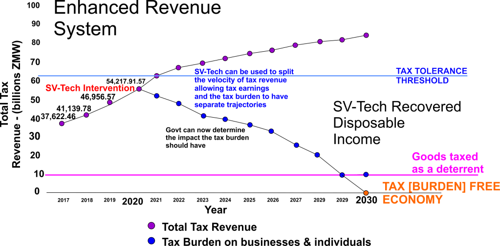 This is unique in that no other technology/system offers central banks this kind of power over an economy. Mediocre natural growth rates such as 3% or 6% are now thrown out the window as the central bank can now harness as much as 100% of an economy’s capacity to grow over time [due to ending inefficiencies causing losses as a result of subtraction or implosion in the circular flow of income]. Since the central bank now controls the growth rate, it is no longer at the mercy of economic indicators, it now dictates them and can raise or slow down economic growth at will. Consequently, it now has near perfect control of the value of the national currency. For the Bank of Zambia, this means that the Zambian government, for the first time in Zambia’s history, would have at its disposal enough financial resources to end poverty in Zambia in just a few years. This is why we have made a submission to the Bank of Zambia for the introduction of a Split-Velocity system in Zambia.
