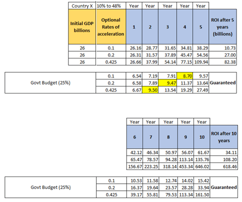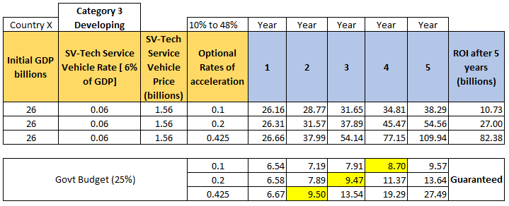 Split Velocity processes and technology is based on science not ideology. In terms of resource mobilisation for development, Ceteris paribus, it is capable of reducing doubling time for GDP to 1 year at constant price. Depending on its needs, from this an economy can choose what proportion of these resources it wants to apply by determining a growth rate . e.g. 40%, 50%, 60%, 70% and so on. This is regardless of the current size of an economy.