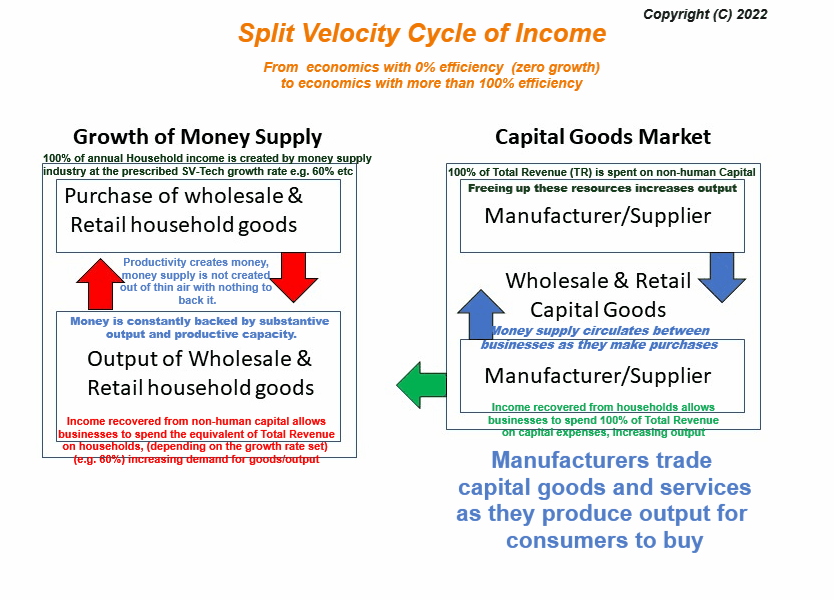 Once corrected using Split Velocity technology (SV-Tech) a new, corrected circular flow of income begins to function in an economy
